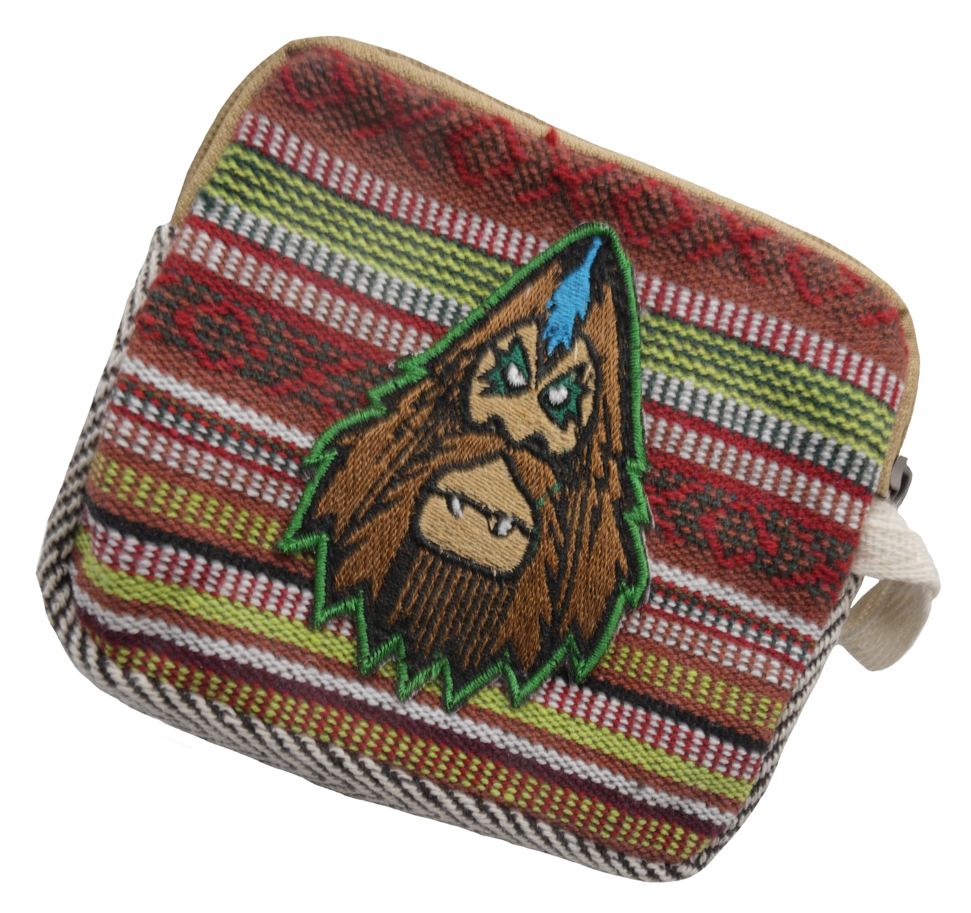 Handmade with hemp and other natural fabrics in Nepal. Features a design by Bigfoot One. Great pouches for coins, herbs, small phones, wallet, passports, or any other items. Has large pocket and smaller pocket on front