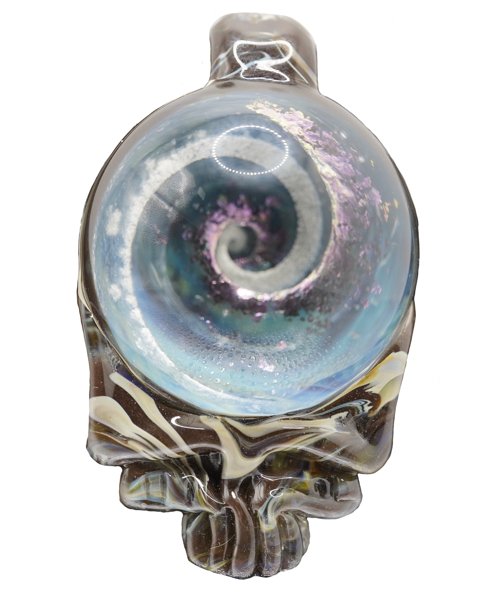 Handblown glow in the dark Rhythm glass stealie pendant.