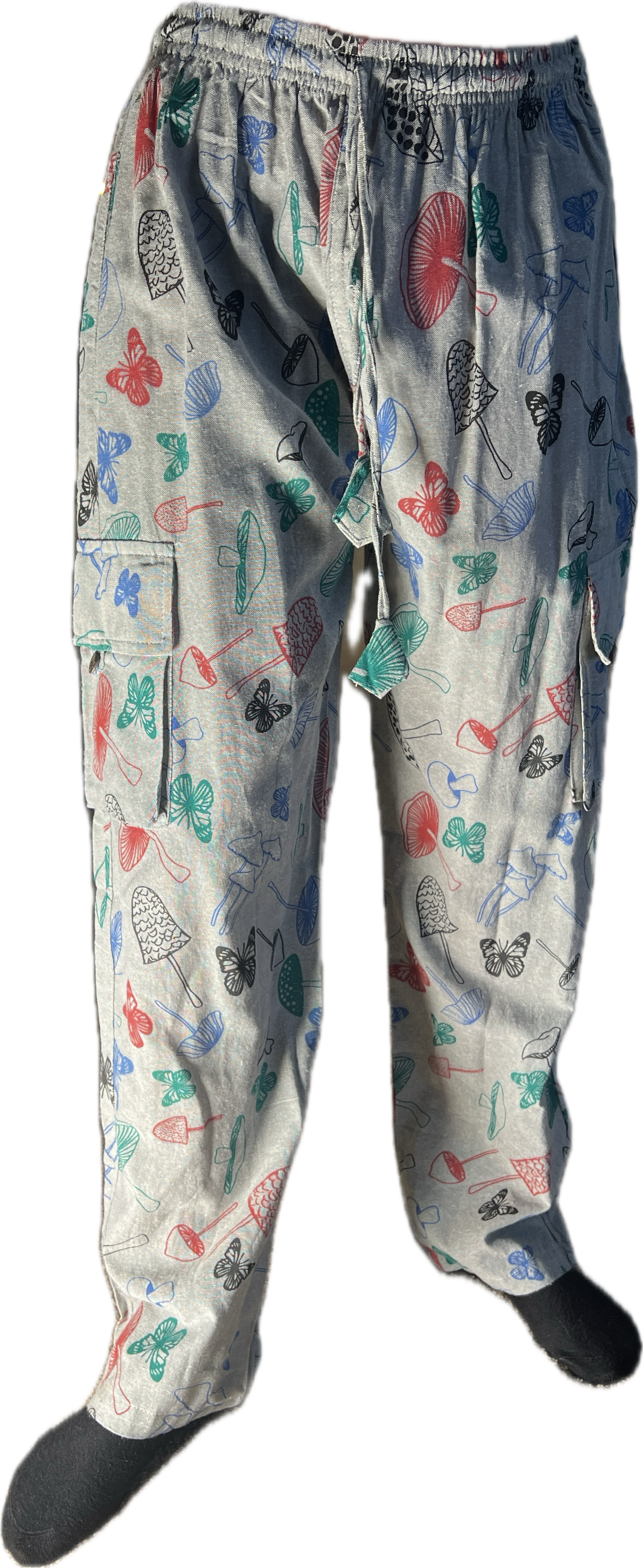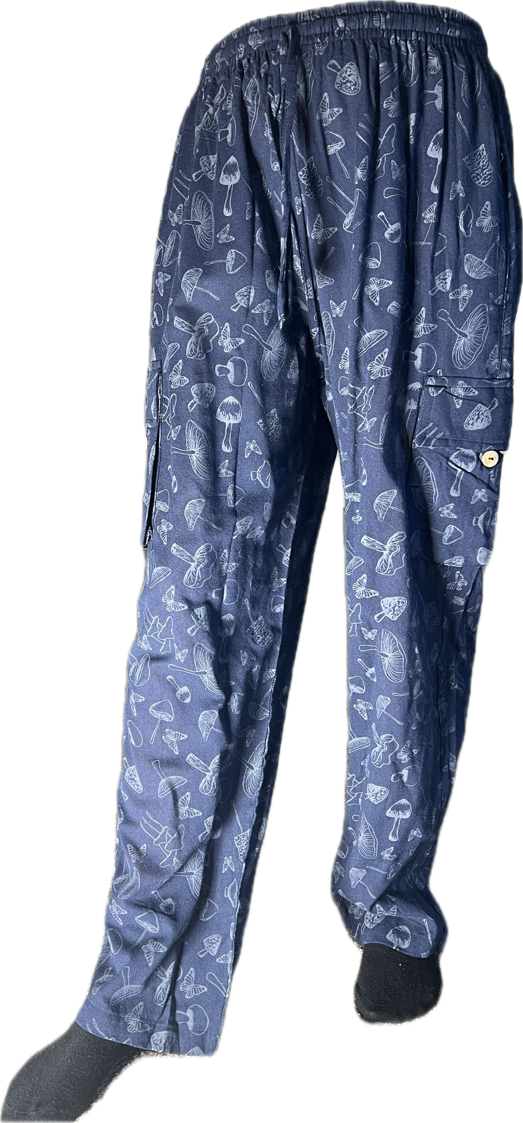 Handmade 100% recycled cotton pants from Nepal. These very comfortable pants feature 2 deep front pockets and a butt pocket as well.